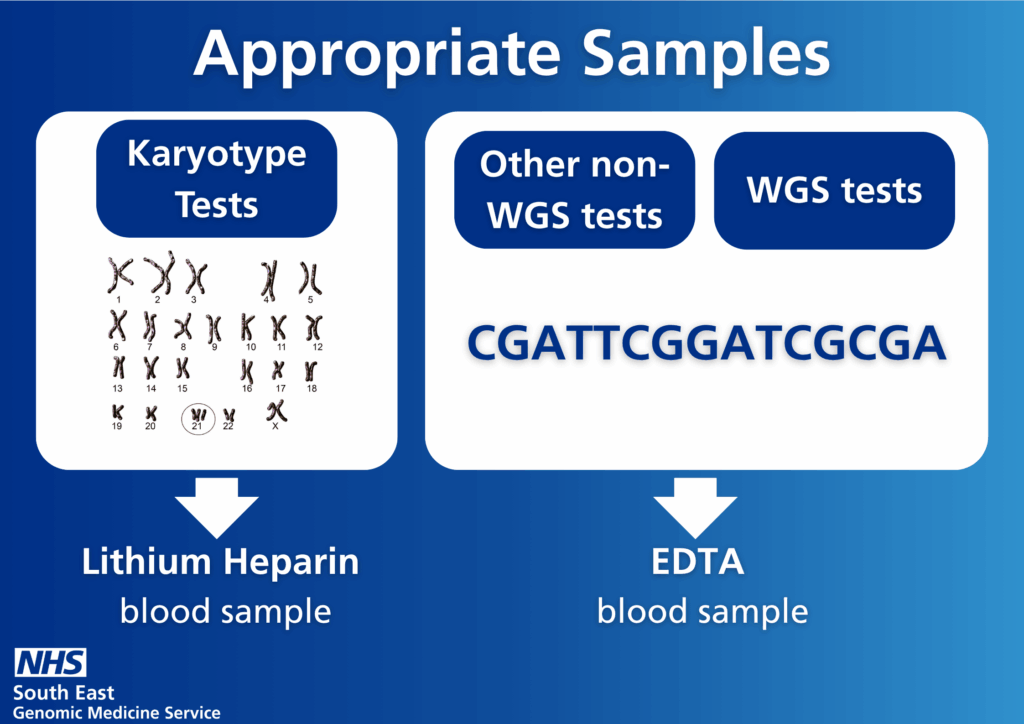 Most genomic tests require an EDTA blood sample (purple top)