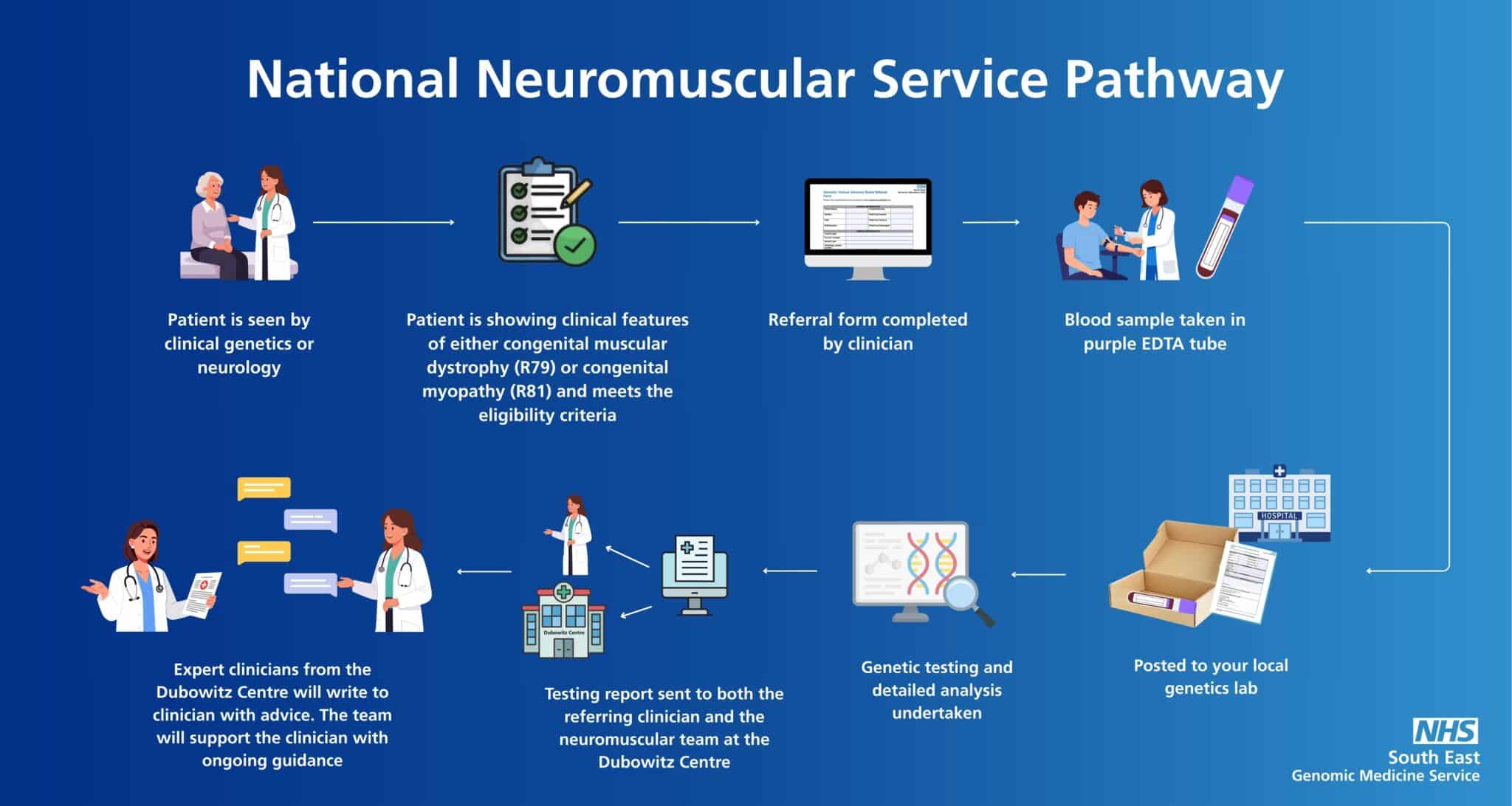 This is a unique and highly specialised genomic testing service for anyone in England who is suspected of having either congenital muscular dystrophy or congenital myopathy.